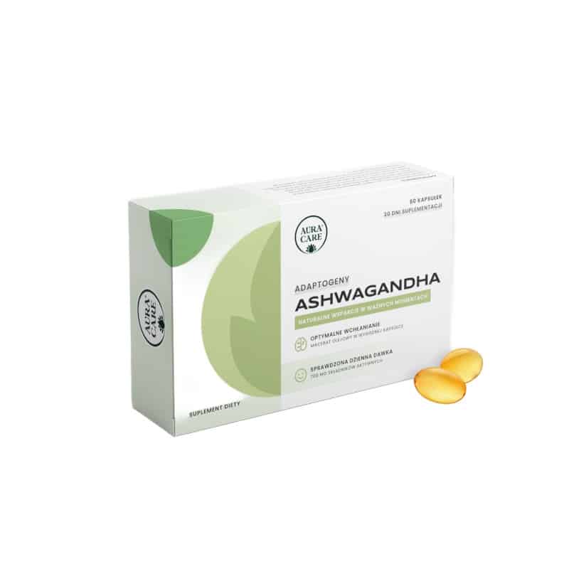 Ashwagandha (Withania somnifera) to roślina adaptogenna stosowana od setek lat w medycynie ajurwedyjskiej. Jej głównym zadaniem jest wspieranie organizmu w przystosowaniu się do stresu oraz przywracanie równowagi (homeostazy). Regularne stosowanie ashwagandhy może wspierać: redukcję stresu i napięcia, poprawę jakości snu, wsparcie koncentracji i funkcji poznawczych, odporność organizmu, równowagę hormonalną. Produkt Aura Care zawiera wysoką dawkę ekstraktu – aż 21000 mg w opakowaniu, co wystarcza na około miesiąc suplementacji.