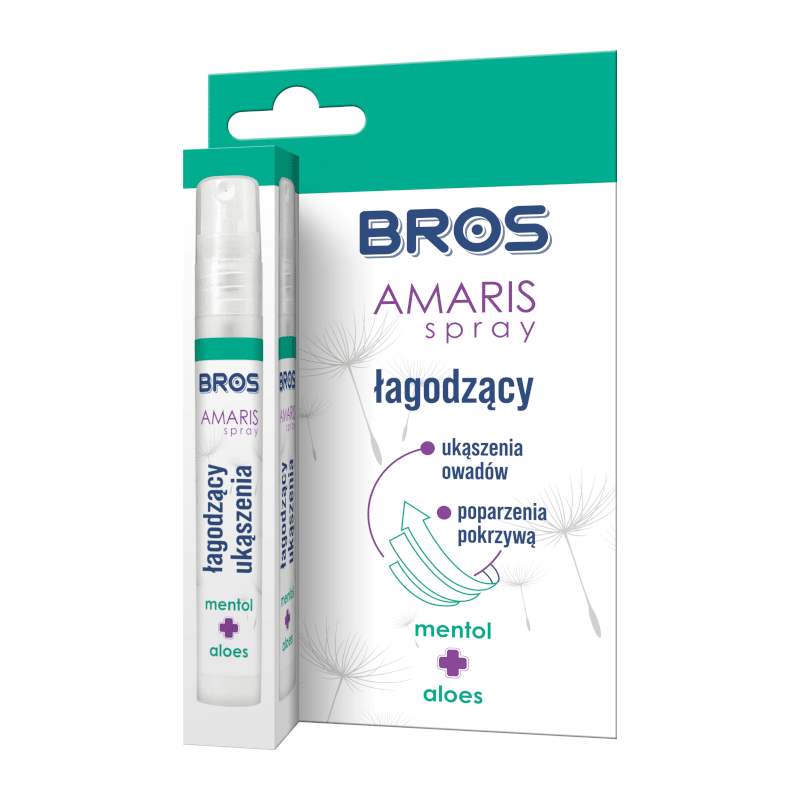 Formuła Amaris spray łagodzący Bros została opracowana tak, aby przynosić natychmiastową ulgę w miejscu ukąszenia, chłodzić podrażnioną skórę oraz zmniejszać uczucie świądu i pieczenia. Dzięki zawartości mentolu, kamfory oraz aloesu, spray łagodzi nieprzyjemne objawy, a przy tym nie pozostawia tłustej warstwy na skórze. Wchłania się błyskawicznie i nie powoduje uczucia lepkości, co jest szczególnie istotne przy wysokich temperaturach i aktywności na świeżym powietrzu.