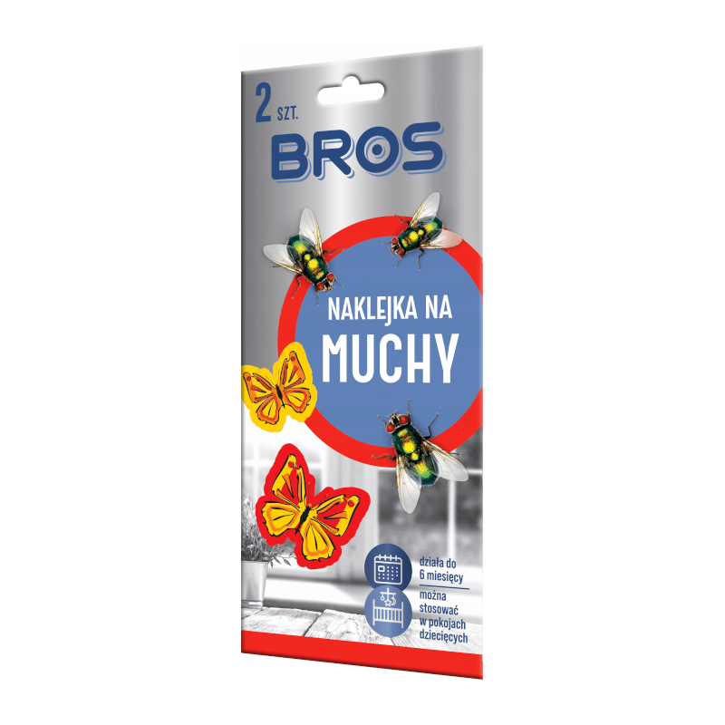 To nowoczesna alternatywa dla tradycyjnych lepów i pułapek na owady. Bros w formie naklejki pozwala skutecznie eliminować muchy w sposób dyskretny – bez lepkich powierzchni i widocznych śladów działania środka. Dzięki zawartości substancji czynnej azametifos (7 mg/szt.), preparat skutecznie wabi i eliminuje muchy, które siadają bezpośrednio na naklejce.