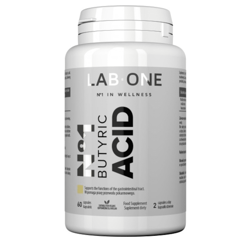 N°1 Butyric ACID LAB ONE to innowacyjny suplement diety zawierający sól sodową kwasu masłowego, który wspiera zdrowie układu pokarmowego. Ponadto kwas masłowy to naturalny kwas tłuszczowy o krótkim łańcuchu, który odgrywa kluczową rolę w utrzymaniu prawidłowego funkcjonowania jelit. Dzięki starannie dobranej formule, produkt wspomaga regenerację komórek nabłonkowych jelit, wspiera trawienie oraz pomaga w utrzymaniu zdrowej flory bakteryjnej.