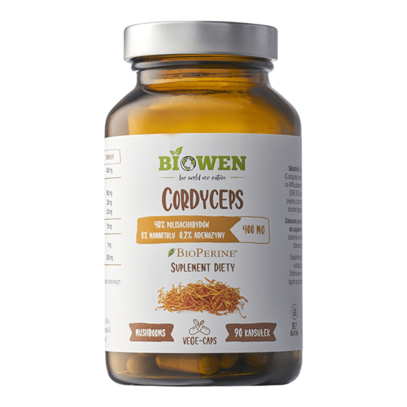 Cordyceps sinensis to grzyb o wyjątkowych właściwościach adaptogennych, stosowany od wieków w tradycyjnej medycynie chińskiej jako środek wzmacniający ciało i umysł. Współczesne badania potwierdzają jego korzystny wpływ na poziom energii, odporność, funkcje oddechowe oraz libido. Suplement Cordyceps Biowen dostarcza ekstraktu z grzybni Cordyceps sinensis w skoncentrowanej postaci – aż 400 mg ekstraktu w każdej kapsułce, a w opakowaniu znajdziesz ich aż 90 sztuk, co wystarcza na 1,5 do 3 miesięcy kuracji.