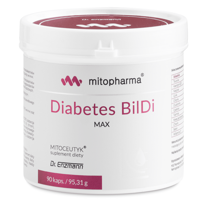 Diabetes BilDi Max MSE Mitopharma to innowacyjny suplement diety, stworzony z myślą o wspieraniu metabolizmu glukozy a także ogólnego zdrowia organizmu. Zawiera unikalne połączenie składników aktywnych, takich jak tauryna, cynk, koenzym Q10, chrom oraz selen. Preparat opracowano w celu wsparcia osób zmagających się z problemami gospodarki cukrowej oraz chcących dbać o zdrowie metaboliczne.
