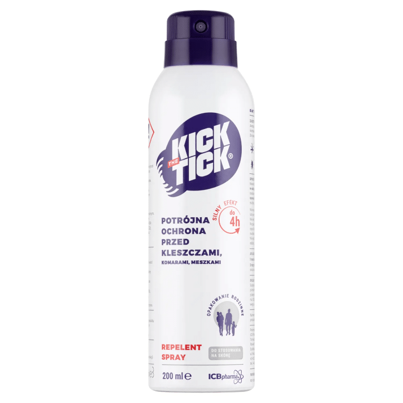 Bez DEET, delikatna formuła, minimalne wchłanianie przez skórę i przyjemny zapach to cechy, które czynią Kick the Tick odpowiednim dla dzieci od 3 roku życia oraz dorosłych. Wydajny 200 ml spray wystarcza na cały sezon!