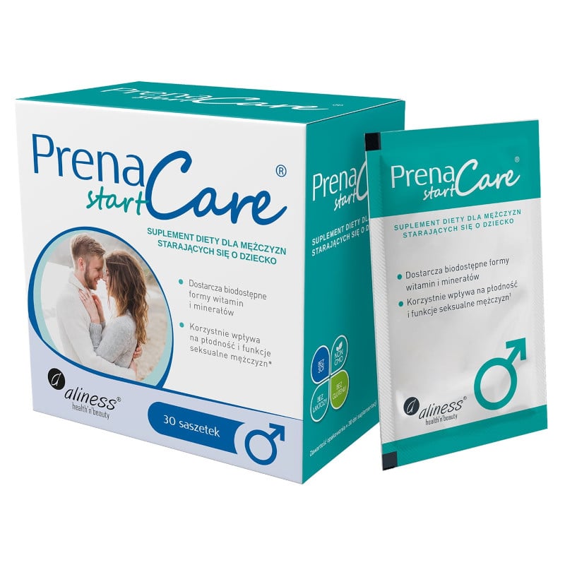 PrenaCare Start dla mężczyzn to suplement diety stworzony z myślą o mężczyznach starających się o dziecko. Produkt zawiera zestaw witamin, ale również minerałów i naturalnych składników roślinnych, które pozytywnie wpływają na płodność i męskie funkcje seksualne. Dodatkowo poprawiają erekcję, zwiększają objętość nasienia i stymulują libido oraz pomagają w zachowaniu naturalnej aktywności seksualnej.