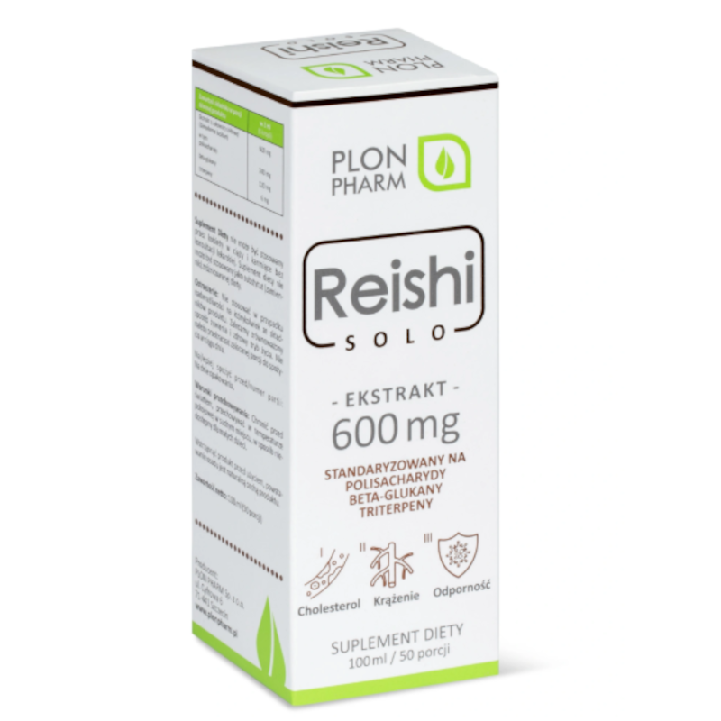 Suplement diety Plon Pharm Reishi Solo 100 ml to wysokiej jakości macerat wodno-glicerolowy ze standaryzowanego ekstraktu z owocników grzyba Reishi (Ganoderma lucidum), znanego również jako lakownica żółtawa. Produkt ten został opracowany z myślą o osobach poszukujących naturalnego wsparcia dla odporności, redukcji stresu oraz ogólnego wzmocnienia organizmu.